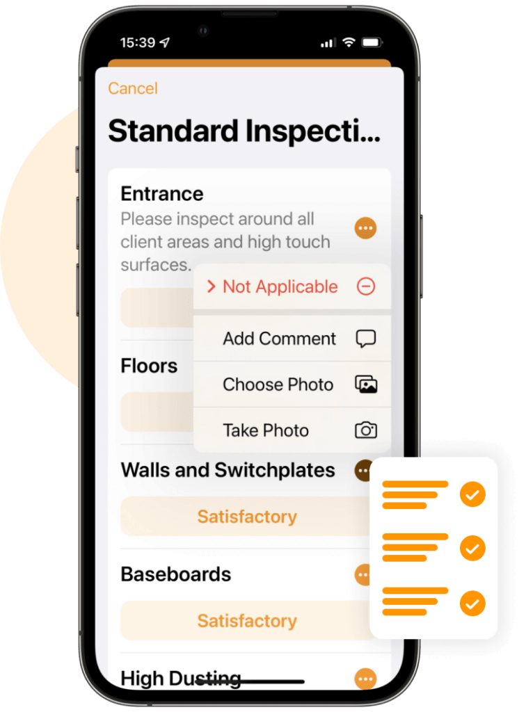 If you can inspect it on paper, you can inspect it in OrangeQC. Our janitorial inspection software lets you create and customize inspection forms, rating criteria, scores, and areas to fit your process.