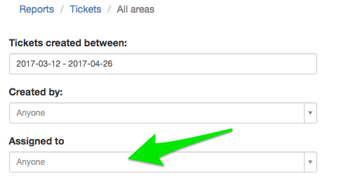 You can now filter the Ticket Report by who is assigned to the ticket. This a great way to see the response time of individuals on your team, as well as for team members to check on all of their own tickets.