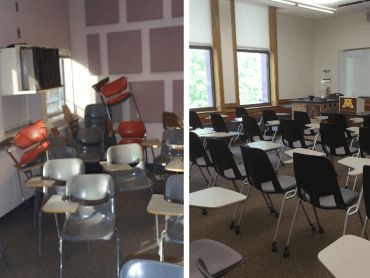 The Office of Classroom Management focuses on caring for spaces so that teaching and learning can flourish. It manages 349 classrooms, 38,000+ square feet of informal learning environments, and 6 computer labs.