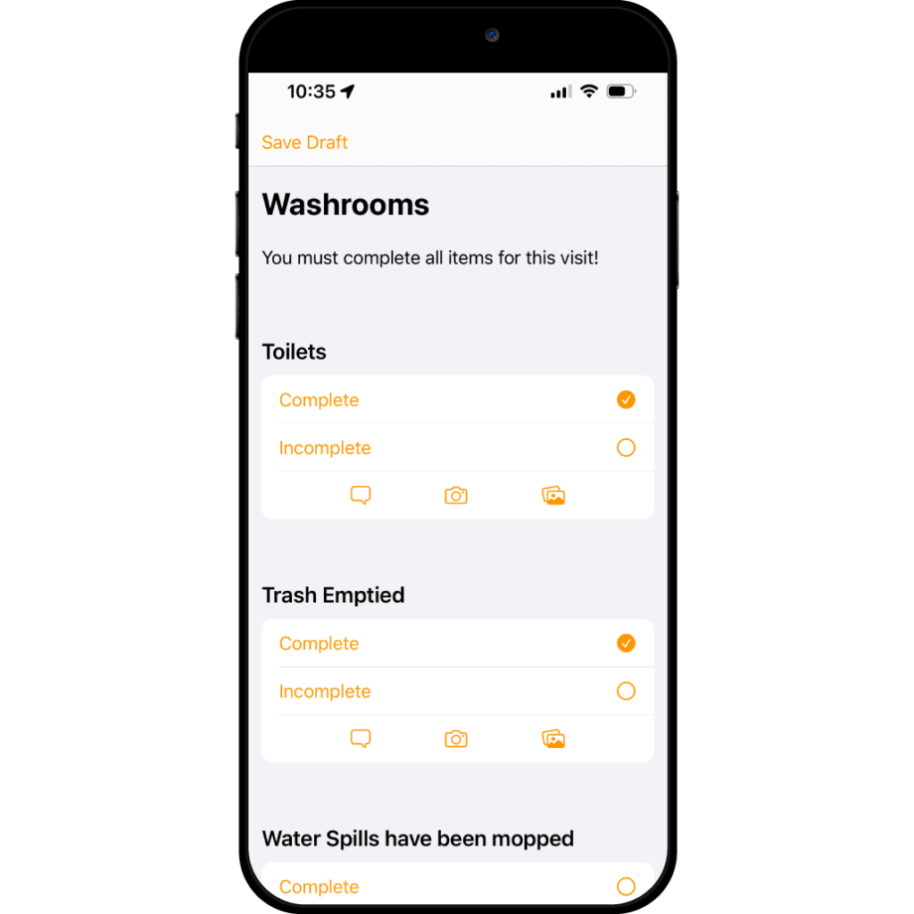 Track your team’s work in one central spot. Customize service checklists for bathroom cleaning, terminal checks, contractor jobs, and more. Photos, GPS, and timestamps streamline the process. You’re left with a solid, verifiable record of services.
